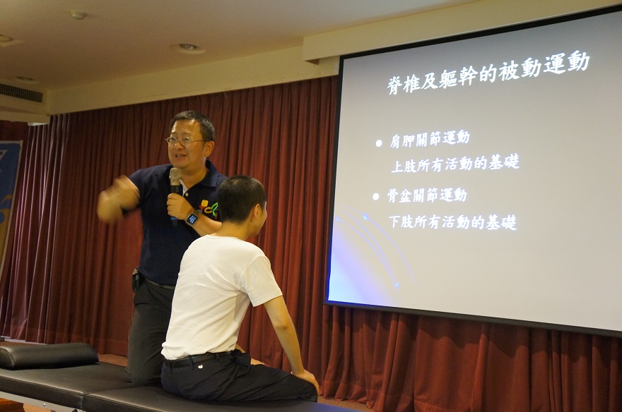 役男學習簡易復健運動,以幫助服役受傷人員減緩肢體功能退化