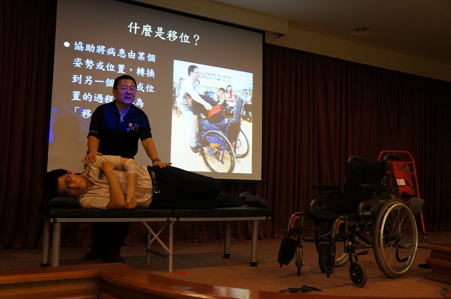 役男學習移位技巧,以利妥善照顧服役受傷人員上下床