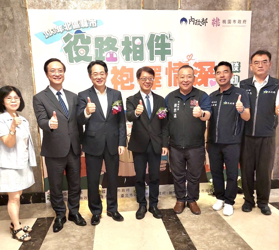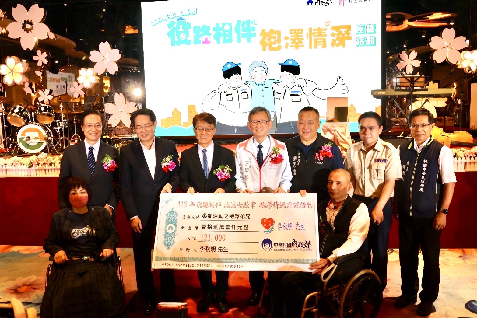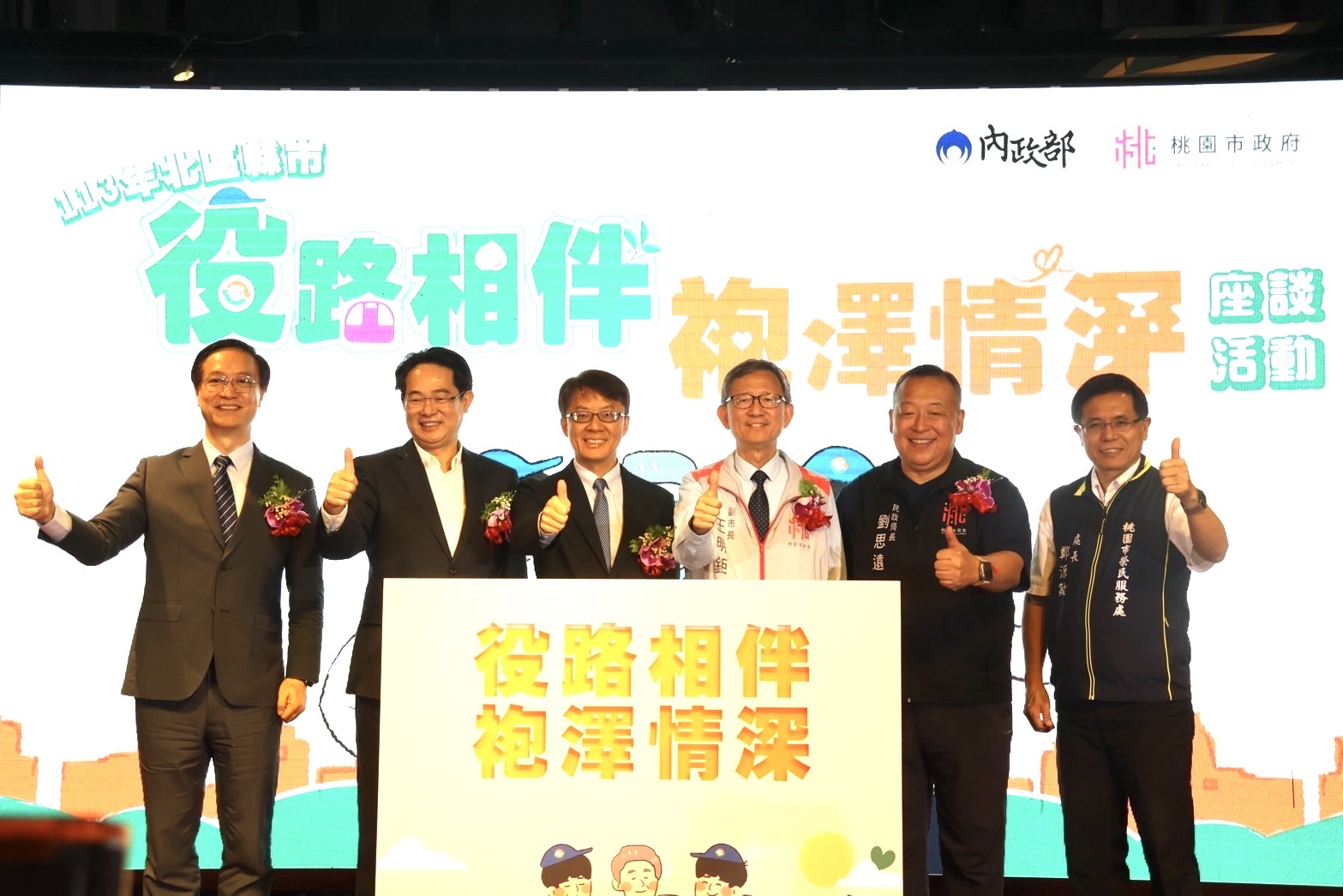 內政部與桃園市政府今(5)日於桃園市聯合舉辦「113年北區縣市役路相伴-袍澤情深座談活動」。內政部主任秘書黃駿逸與桃園市副市長王明鉅親臨現場致贈慰問金,表達對服義務役期間因公受傷退停役人員的關懷,活動除邀請服義務役期間因公致身心障礙的弟兄及其家屬、公益弱勢團體的代表外,並安排替代役公益大使團與當地樂團合作表演,營造熱鬧氛圍,計約500人共襄盛舉。