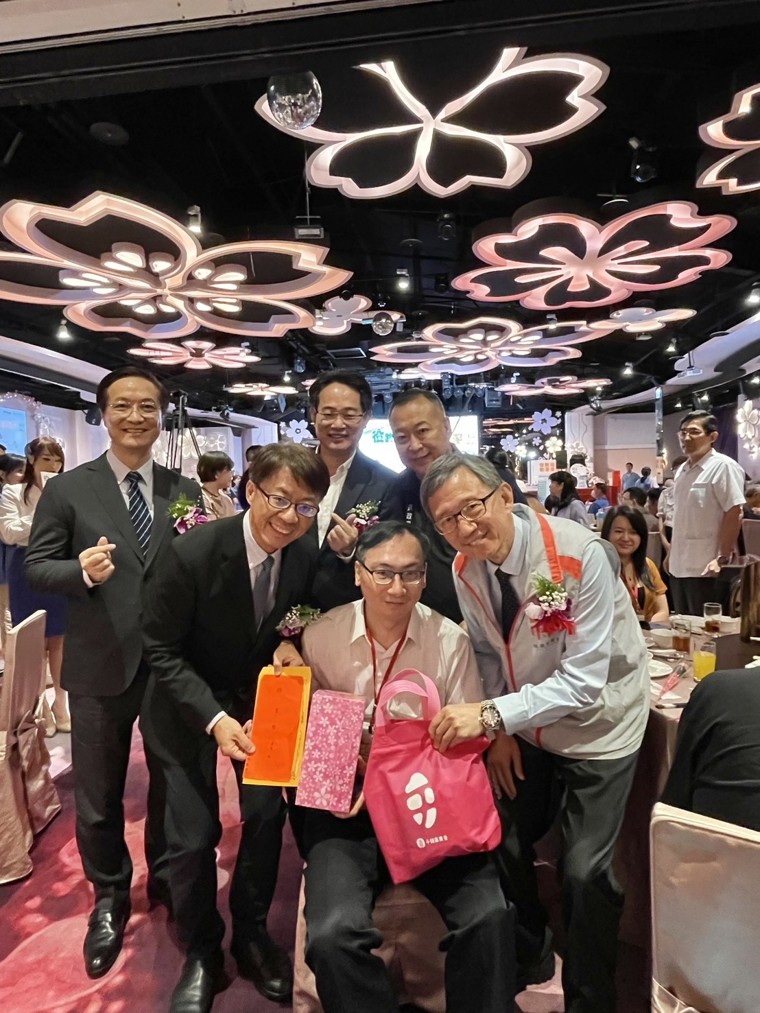 圖4:內政部主任秘書黃駿逸(左2)、役政司沈哲芳司長(左3)、陳裕興副司長(左1) 、桃園市政府副市長王明鉅(右1) 、民政局局長劉思遠(右2)共同致贈基隆市弟兄代表林宗陞慰問金及獎勵品。