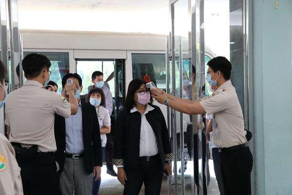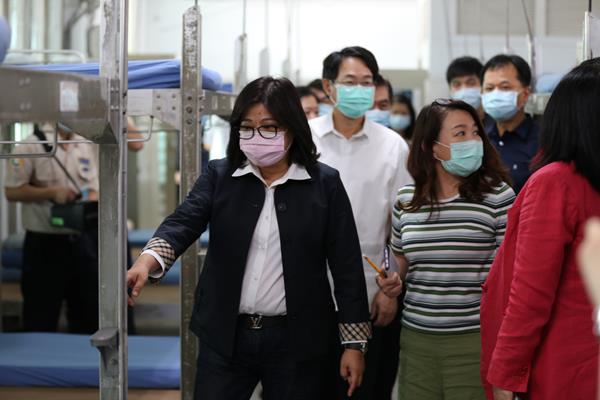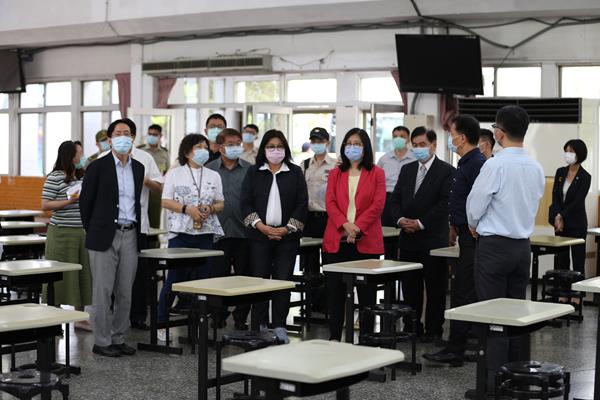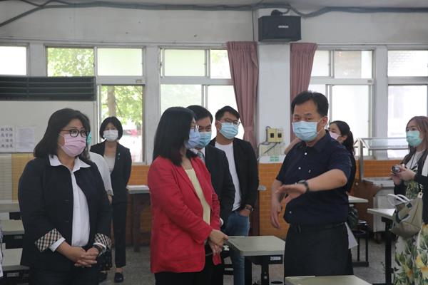 內政委員巡視餐廳配置由蔡執行秘書說明用餐防疫情形