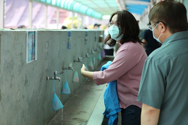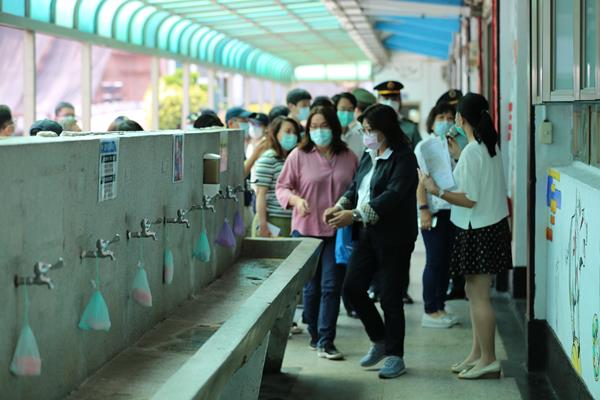 內政委員親自使用替代役訓練班的防疫配置完洗手台