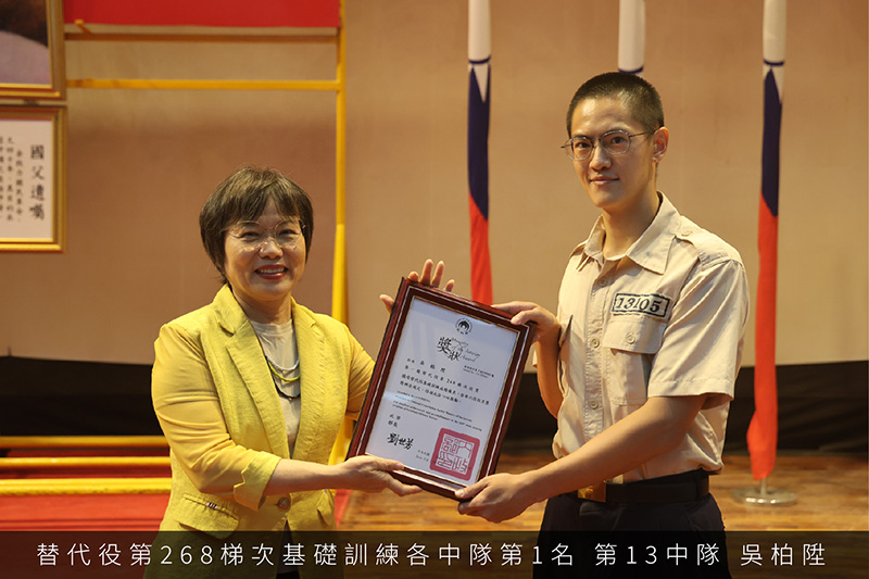 替代役訓練班第268梯次基礎訓練各中隊第1名_第3中隊-孫抒硯 替代役訓練班第268梯次基礎訓練各中隊第1名_第5中隊-陳宏昇 替代役訓練班第268梯次基礎訓練各中隊第1名_第7中隊-謝勵維 替代役訓練班第268梯次基礎訓練各中隊第1名_第9中隊-廖鵬翔 替代役訓練班第268梯次基礎訓練各中隊第1名_第11中隊-林柏辰 替代役訓練班第268梯次基礎訓練各中隊第1名_第13中隊-吳柏陞 替代役訓練班第268梯次基礎訓練各中隊第1名_第14中隊-林楷傑 替代役訓練班第268梯次替代役之歌第1名_第7中隊 替代役訓練班第268梯次替代役之歌第2名_第5中隊 替代役訓練班第268梯次替代役之歌第3名_第3中隊 替代役訓練班第268梯次綜合評比第1名_第8中隊 替代役訓練班第268梯次綜合評比第2名_第7中隊 替代役訓練班第268梯次綜合評比第3名_第6中隊