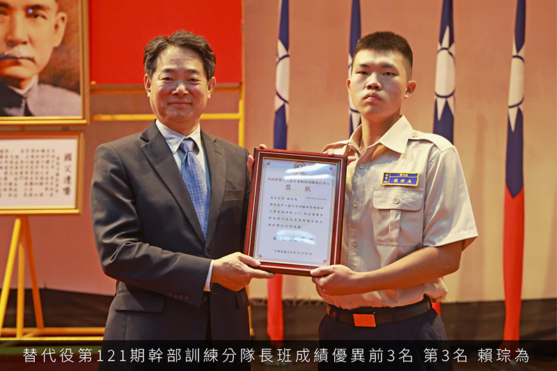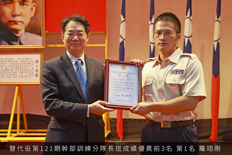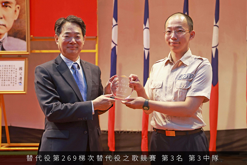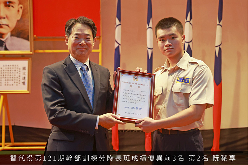 管理幹部訓練-第121期替代役幹部訓練分隊長班成績優異前3名 第121期-幹部訓練分隊長班成績優異前3名_第1名-羅翊剛 第121期-幹部訓練分隊長班成績優異前3名_第2名-阮稷享 第121期-幹部訓練分隊長班成績優異前3名_第3名-賴琮為 勵志歌曲比賽-替代役第269梯次替代役之歌競賽 替代役訓練班第269梯次替代役之歌第1名_第5中隊 替代役訓練班第269梯次替代役之歌第2名_第11中隊 替代役訓練班第269梯次替代役之歌第3名_第3中隊 綜合考評-替代役第269梯次綜合考評競賽 替代役訓練班第269梯次綜合評比第1名_第6中隊 替代役訓練班第269梯次綜合評比第2名_第5中隊 替代役訓練班第269梯次綜合評比第3名_第7中隊 各隊受訓役男第一名-269梯次基礎訓練各中隊第一名 替代役訓練班第269梯次基礎訓練各中隊第1名_第3中隊-許嘉佑 替代役訓練班第269梯次基礎訓練各中隊第1名_第5中隊-朱睿閎 替代役訓練班第269梯次基礎訓練各中隊第1名_第7中隊-方昱人 替代役訓練班第269梯次基礎訓練各中隊第1名_第9中隊-張竣凱 替代役訓練班第269梯次基礎訓練各中隊第1名_第10中隊-曾偉倫 替代役訓練班第269梯次基礎訓練各中隊第1名_第11中隊-許祐寧 替代役訓練班第269梯次基礎訓練各中隊第1名_第12中隊-張聿維 替代役訓練班第269梯次基礎訓練各中隊第1名_第13中隊-王思淮 替代役訓練班第269梯次基礎訓練各中隊第1名_第14中隊-王暐翔 管理幹部訓練-第120期替代役幹部訓練分隊長班成績優異前3名 第120期-幹部訓練分隊長班成績優異前3名_第1名-張皓華 第120期-幹部訓練分隊長班成績優異前3名_第2名-許睿澤 第120期-幹部訓練分隊長班成績優異前3名_第3名-張順隆 12345678910...