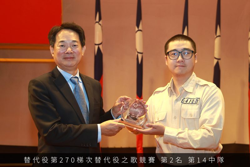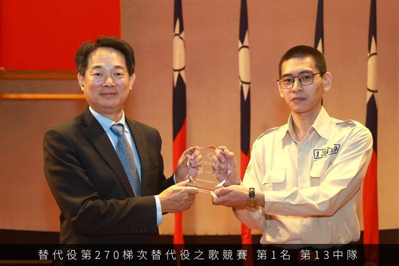 勵志歌曲比賽-替代役第270梯次替代役之歌競賽 替代役訓練班第270梯次替代役之歌第1名_第13中隊 替代役訓練班第270梯次替代役之歌第2名_第14中隊 替代役訓練班第270梯次替代役之歌第3名_第5中隊 綜合考評-替代役第270梯次綜合考評競賽 替代役訓練班第270梯次綜合評比第1名_第5中隊 替代役訓練班第270梯次綜合評比第2名_第6中隊 替代役訓練班第270梯次綜合評比第3名_第7中隊 各隊受訓役男第一名-270梯次基礎訓練各中隊第一名 替代役訓練班第270梯次基礎訓練各中隊第1名_第3中隊-許景華 替代役訓練班第270梯次基礎訓練各中隊第1名_第5中隊-羅柚翔 替代役訓練班第270梯次基礎訓練各中隊第1名_第7中隊-吳思賢 替代役訓練班第270梯次基礎訓練各中隊第1名_第9中隊-林聖傑 替代役訓練班第270梯次基礎訓練各中隊第1名_第11中隊-楊承穎 替代役訓練班第270梯次基礎訓練各中隊第1名_第13中隊-王柏傑 替代役訓練班第270梯次基礎訓練各中隊第1名_第14中隊-崔士豪 替代役訓練班第270梯次基礎訓練各中隊第1名_第15中隊-陳聖惟 替代役訓練班第270梯次基礎訓練各中隊第1名_第16中隊-曾宇紹 管理幹部訓練-第121期替代役幹部訓練分隊長班成績優異前3名 第121期-幹部訓練分隊長班成績優異前3名_第1名-羅翊剛 第121期-幹部訓練分隊長班成績優異前3名_第2名-阮稷享 第121期-幹部訓練分隊長班成績優異前3名_第3名-賴琮為 勵志歌曲比賽-替代役第269梯次替代役之歌競賽 替代役訓練班第269梯次替代役之歌第1名_第5中隊 替代役訓練班第269梯次替代役之歌第2名_第11中隊 替代役訓練班第269梯次替代役之歌第3名_第3中隊 12345678910...