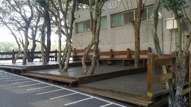 環境介紹 木棧休憩平台 木棧休憩平台座落於替代役訓練班的第一、二大隊區塊,用來提供一個紓壓的環境,有別於成功嶺給人的嚴肅氣息,讓役男們在服役之餘,也可以在木棧休憩平台處放鬆心情,暫時放下部隊緊張快速的節奏,讓身心都能夠再次充電,繼續磨練自我。 同時木棧休憩平台也成為懇親會時的重要一環,是役男與親朋好友相聚放鬆的好地方,讓人有賓至如歸的感覺,打造一個舒適悠閒的空間,令役男們能夠更放心,更享受在成功嶺服役的時光!