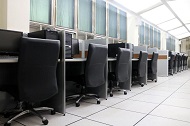 環境介紹 電腦教室 替代役訓練班設置2間電腦教室,電腦教室(一)於民國95年建置、電腦教室(二)於民國99年建置,教室採用防水高架地板,並有電腦專用OA屏風及電腦桌椅,各線材收納於地高架地板下,營造一個專業、舒適、美觀的空間。每間配有66台電腦及21.5吋螢幕,使用VHD無硬碟管理系統及配有廣播教學系統,主要用途有:1.每梯次受訓役男電腦適性心理測驗、2.本署甄選組辦理役別甄選業務、3.辦理電腦教育訓練。